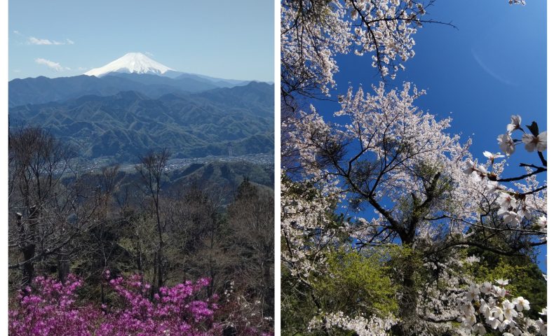 山頂から見事な富士山、登山道のあちこちに散り始めの桜、春を満喫できました