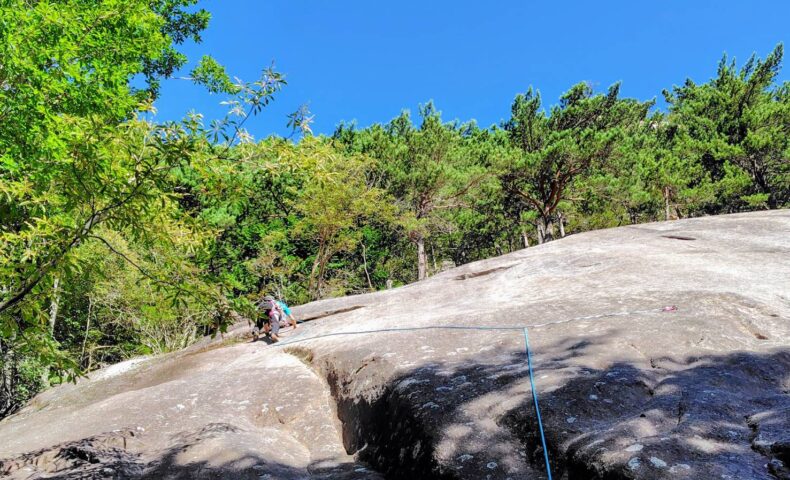 ガマスラブ3本登ってきました。1本は何とかリード。あとは少しずつ難しいルートなので、トップロープ。淳さんが「よくこんなとこリードで登ってたなぁ〜」とぼやいてました。