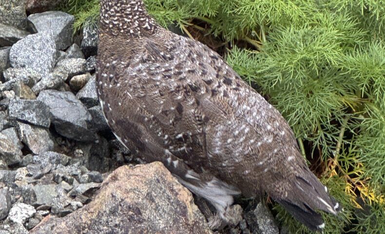 早朝は雨と風が強く下山困難になるかと心配しましたが、思ったより天候回復して下山途中、雷鳥に出会えました♪