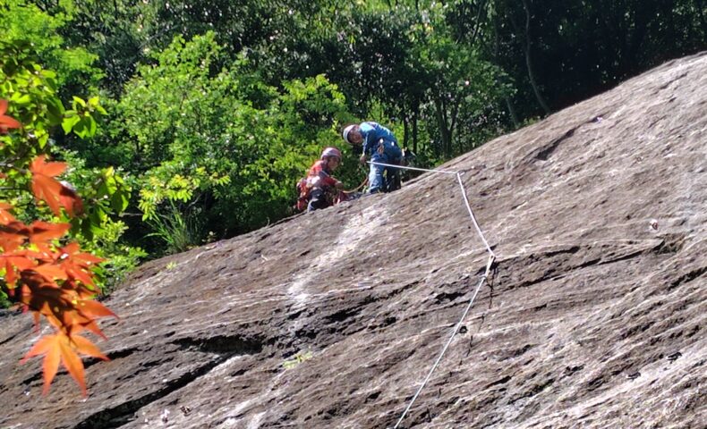3人で3ピッチ登り、確保と懸垂下降のクライミングシステムを練習しました。