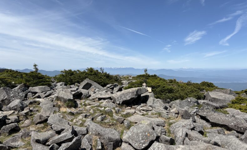 好口育男、堀内智恵子12時30分に下山しました。中山展望台からの眺めは北から中央、南アルプスまでよく見えました。