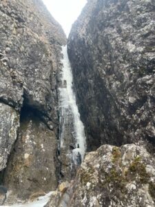 下山しています。 昇天の氷柱は細いですがつながっていて、 上まで登れました。